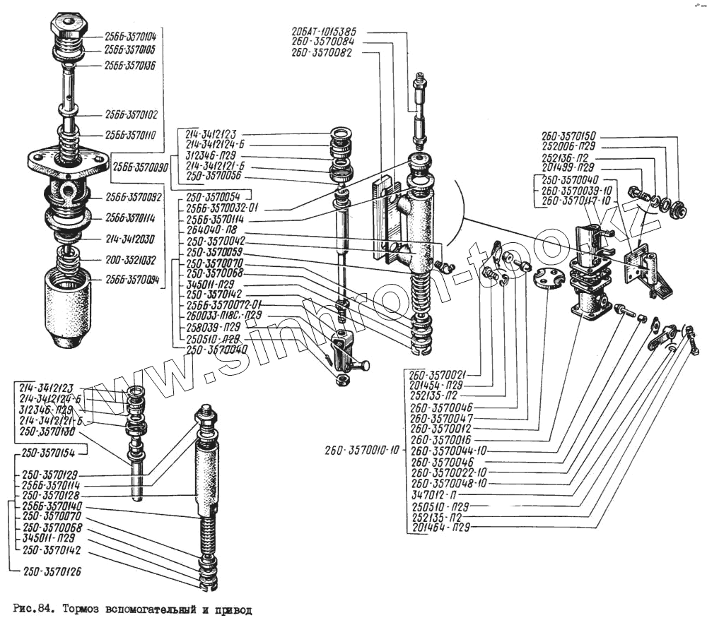 Каталог запасных частей к технике: КрАЗ-260. Тормоз вспомогательный и привод