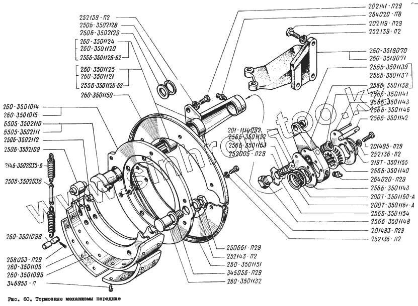 Каталог запасных частей к технике: КрАЗ-260. Тормозные механизмы передние