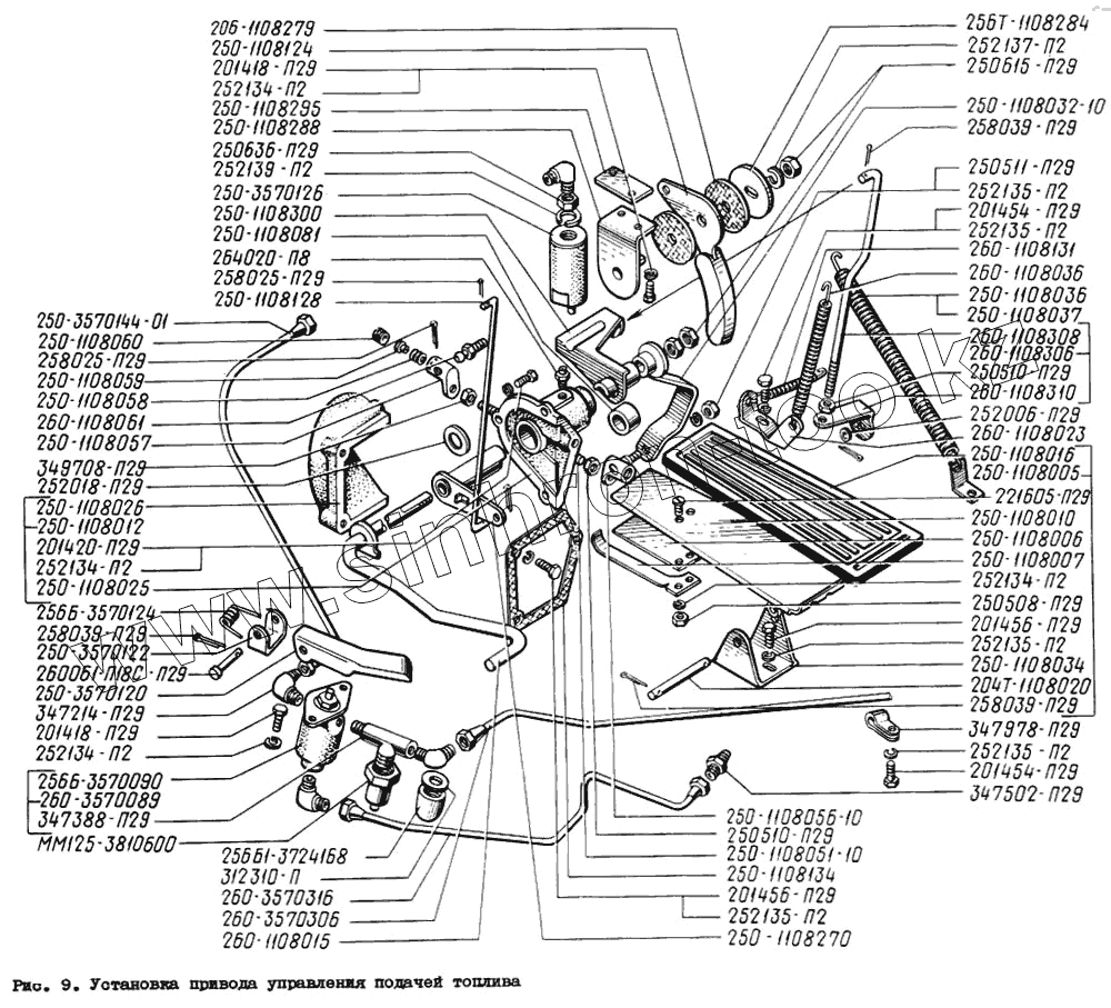 | 250-1108005 | 250-1108005 | Педаль управления подачей топлива с кронштейном в сборе | |