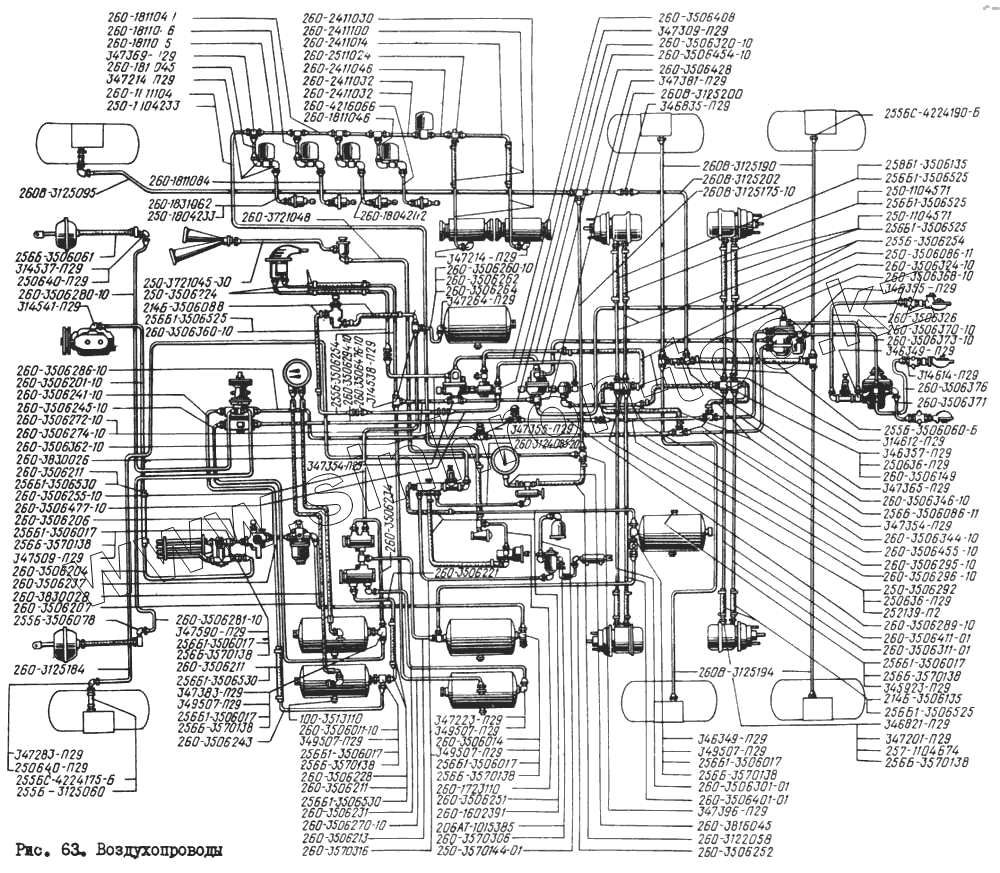 Каталог запасных частей к технике: КрАЗ-260. Воздухопроводы