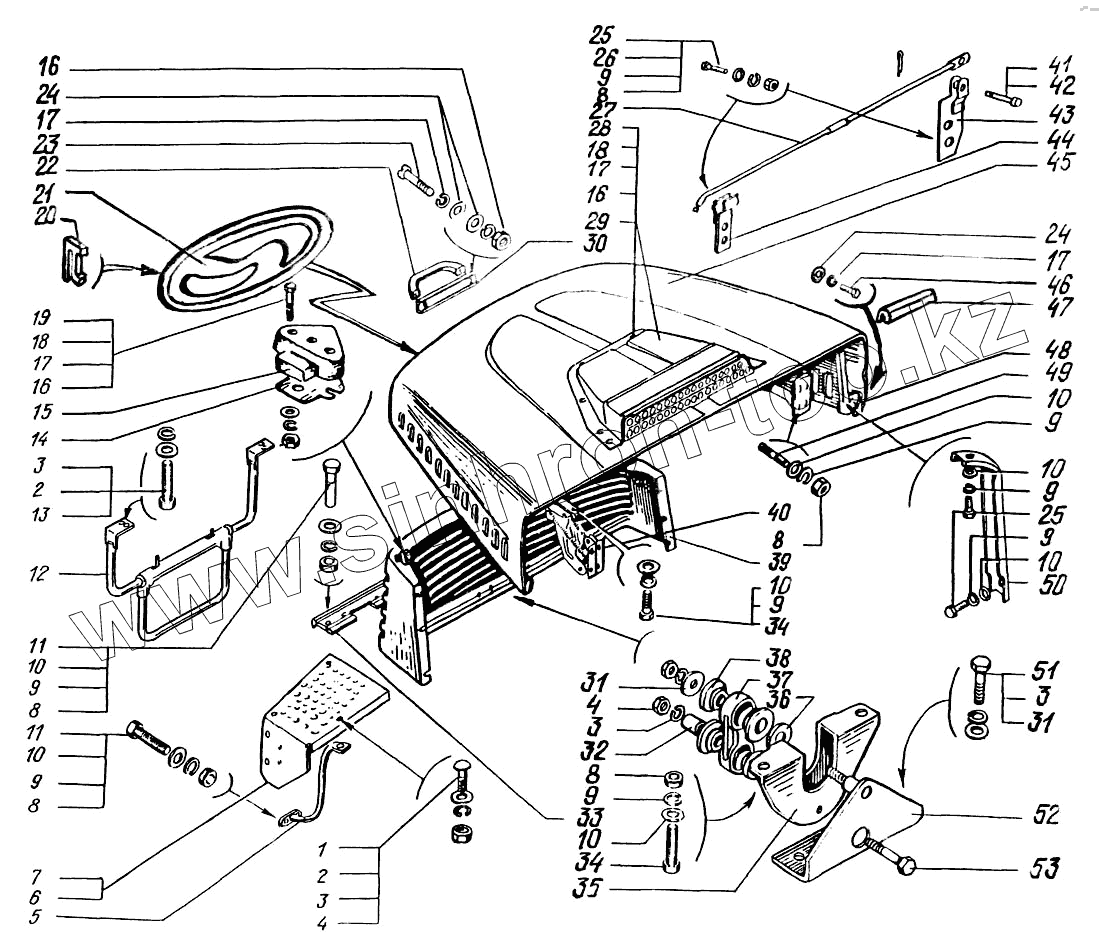 Каталог запасных частей к технике: КрАЗ-63221. Облицовка радиатора и капот