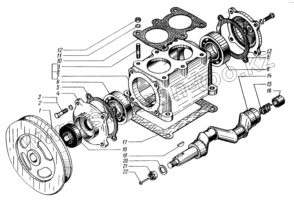 Каталог запасных частей к технике: КрАЗ-6322. Картер и вал коленчатый компрессора