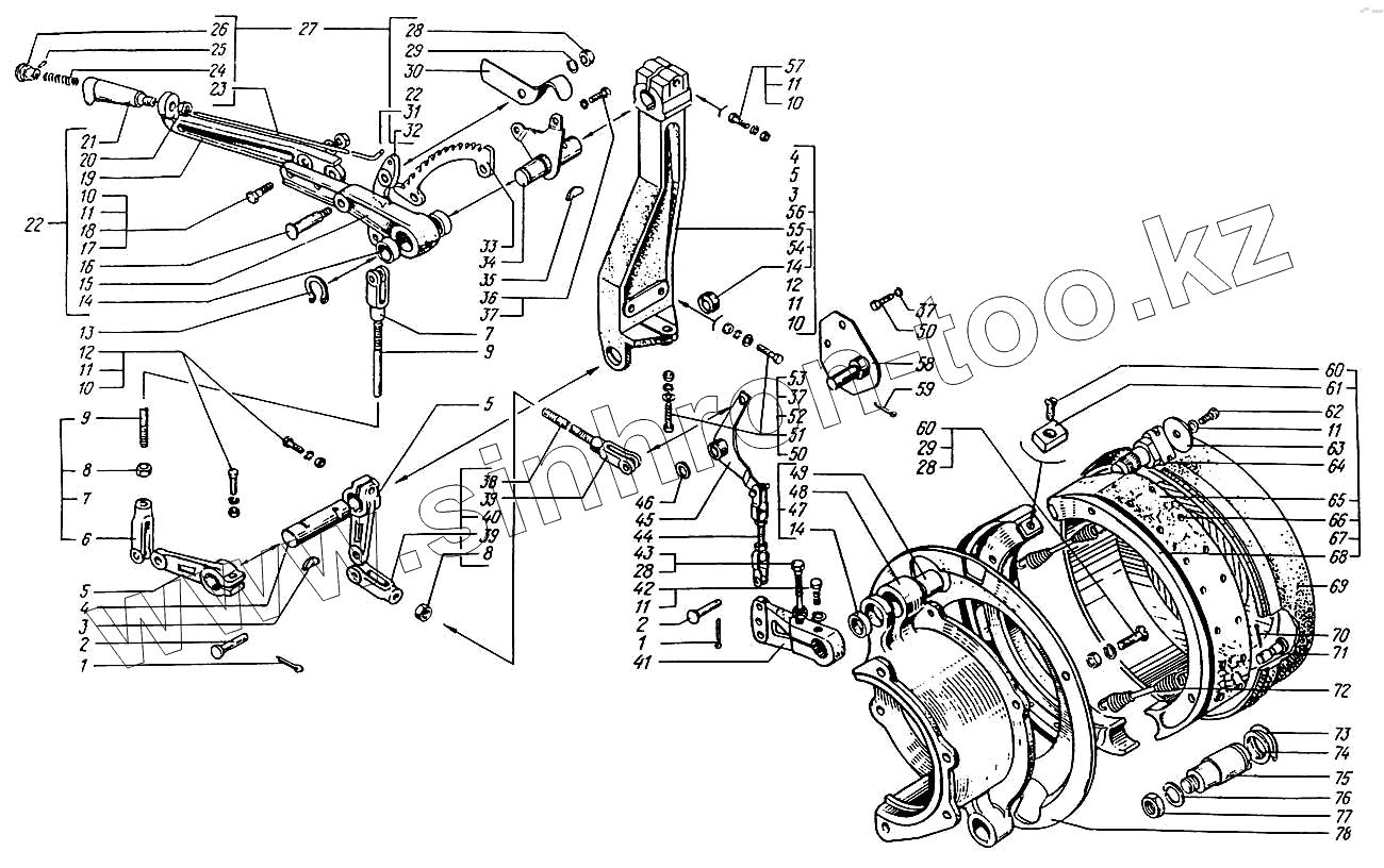 Каталог запасных частей к технике: КрАЗ-6322. Управление стояночной тормозной системой