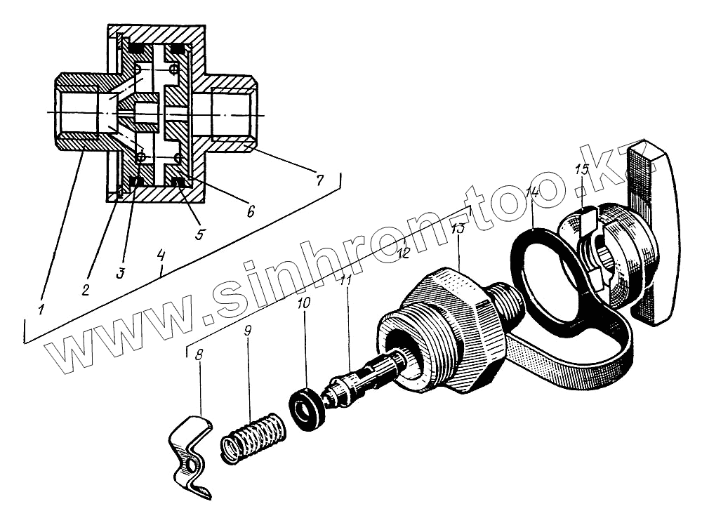 Каталог запасных частей к технике: КрАЗ-6322 (шасси). Клапан контрольного вывода и клапан обрыва