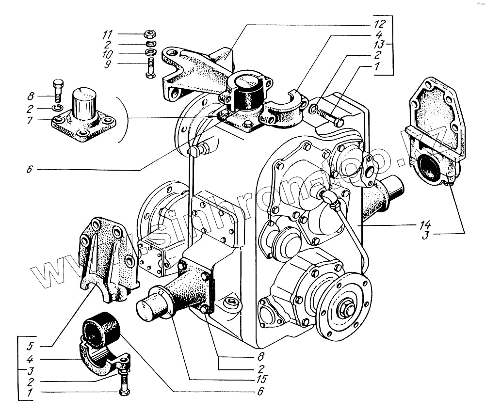 Каталог запасных частей к технике: КрАЗ-6322 (шасси). Подвеска раздаточной коробки