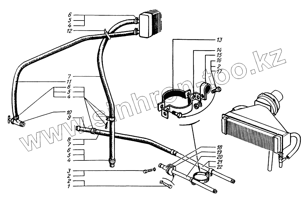 Каталог запасных частей к технике: КрАЗ-6322 (шасси). Трубопроводы системы отопления кабины