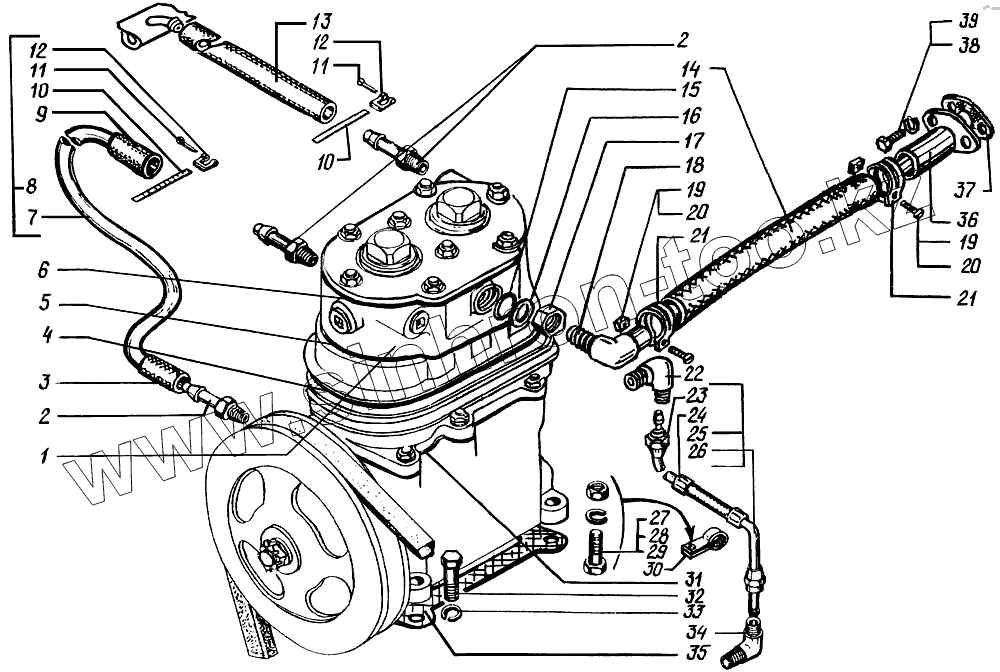 Каталог запасных частей к технике: КрАЗ-6322 (шасси). Установка и привод компрессора