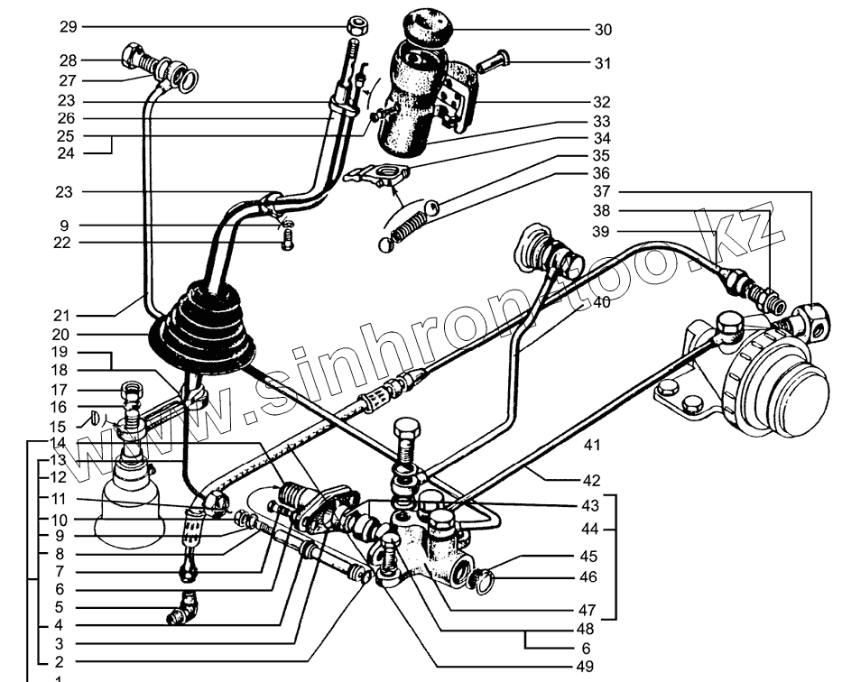 Каталог запасных частей к технике: КрАЗ-64372, 6133М6. Рычаг переключения передач, кран управления