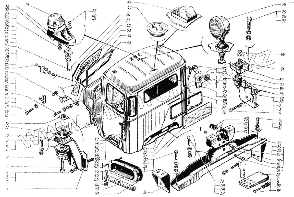 Каталог запасных частей к технике: КрАЗ-6443. Кабина в сборе и крепление кабины