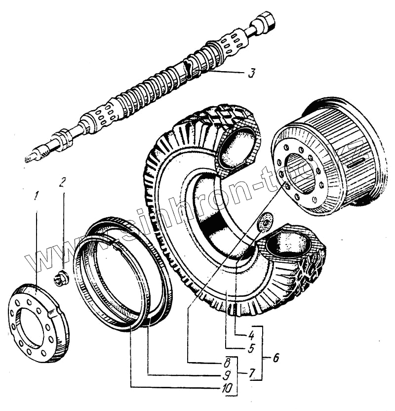 Каталог запасных частей к технике: КрАЗ-6443. Колесо дисковое с шиной