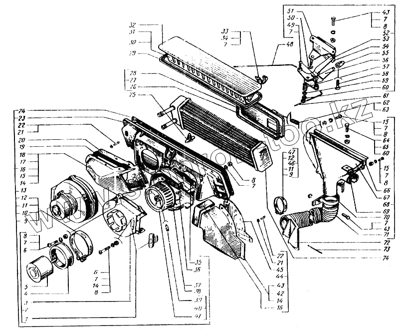 Каталог запасных частей к технике: КрАЗ-6443. Отопитель кабины и обогреватель ветровых стекол