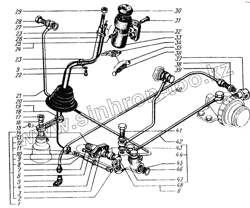 Каталог запасных частей к технике: КрАЗ-6443. Рычаг переключения передач, кран управления