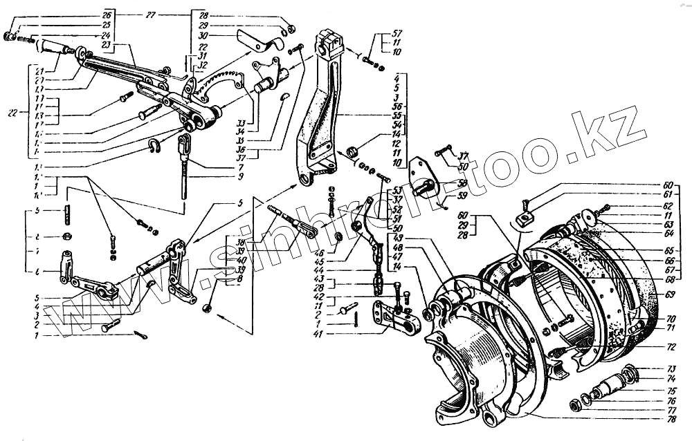 Каталог запасных частей к технике: КрАЗ-6443. Управление стояночной тормозной системой