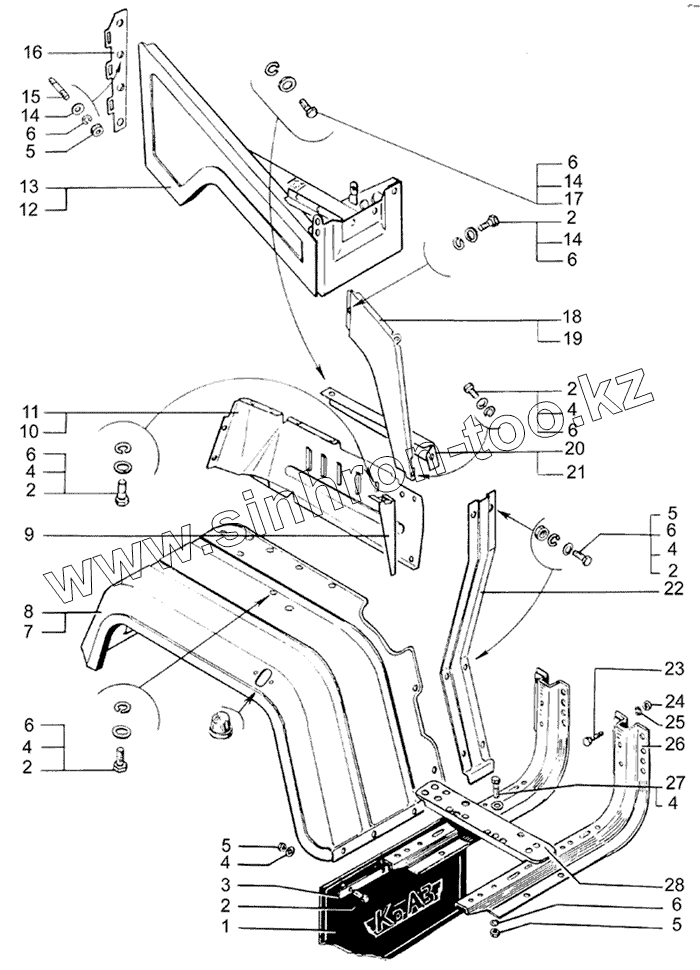 Каталог запасных частей к технике: КрАЗ-65053-02. Крыло переднее и подножки