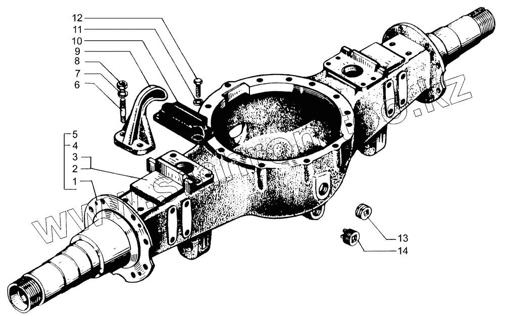 Каталог запасных частей к технике: КрАЗ-65053-02. Мосты задний и средний (картер)
