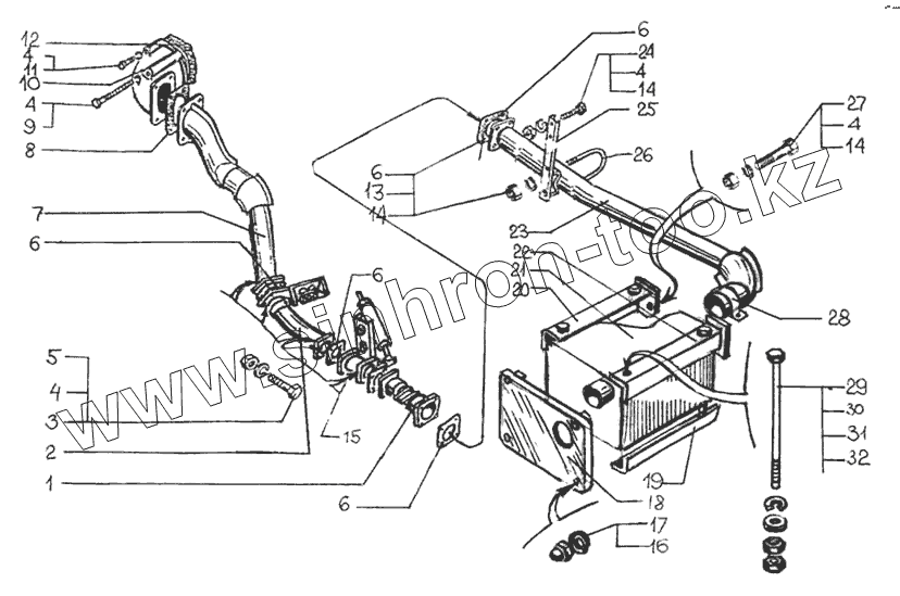 Каталог запасных частей к технике: КрАЗ-65053-02. Система выпуска отработавших газов