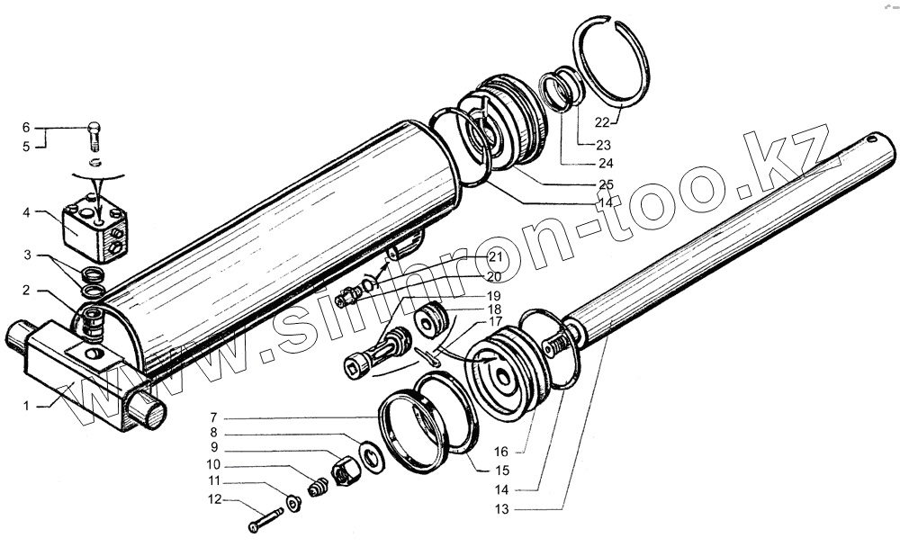 Каталог запасных частей к технике: КрАЗ-65053-02. Цилиндр опрокидывающего механизма