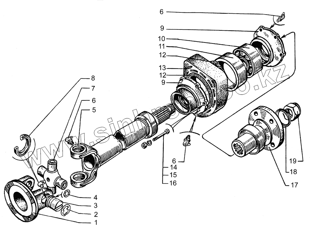 Каталог запасных частей к технике: КрАЗ-65053-02. Вал карданный с опорой
