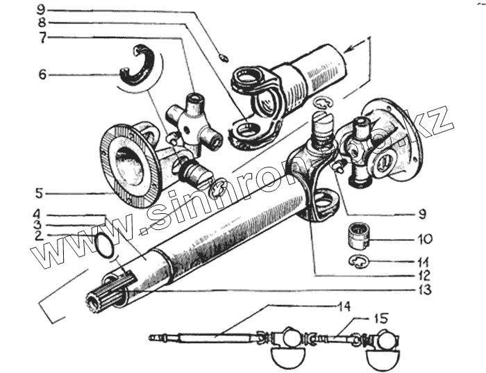 Каталог запасных частей к технике: КрАЗ-65053-02. Вал карданный заднего и среднего мостов