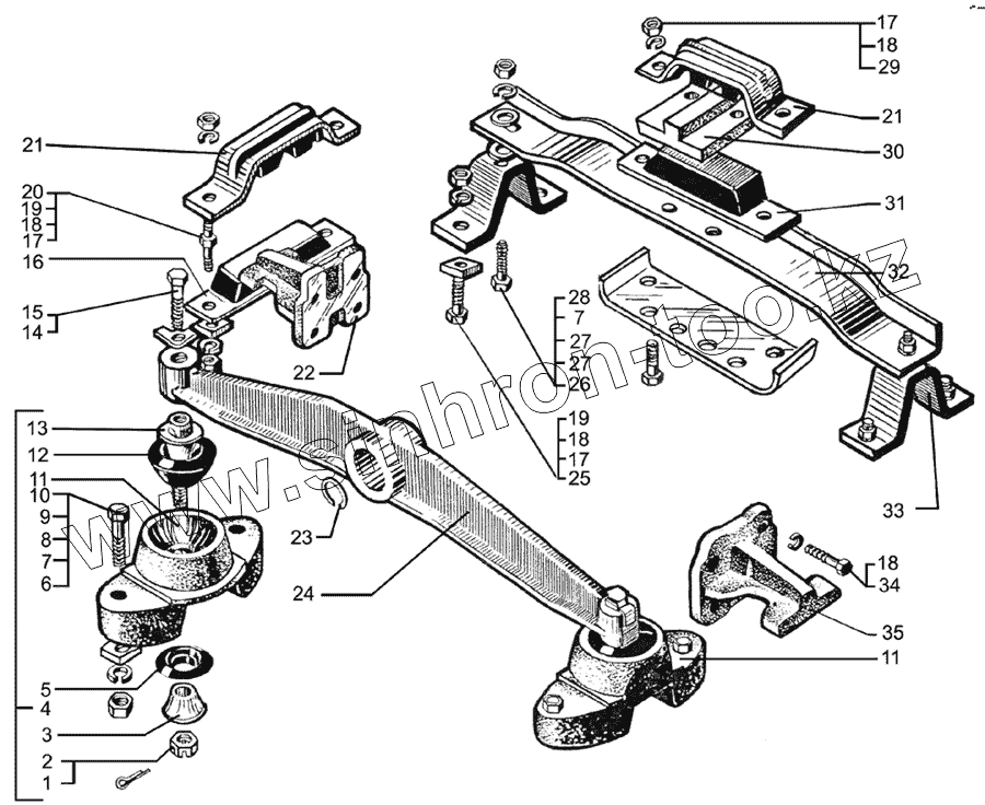 Каталог запасных частей к технике: КрАЗ-65055-02. Крепление силового агрегата