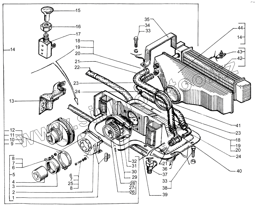 | 44 | 6437-8110138 | Кожух отопителя с радиатором в сборе |