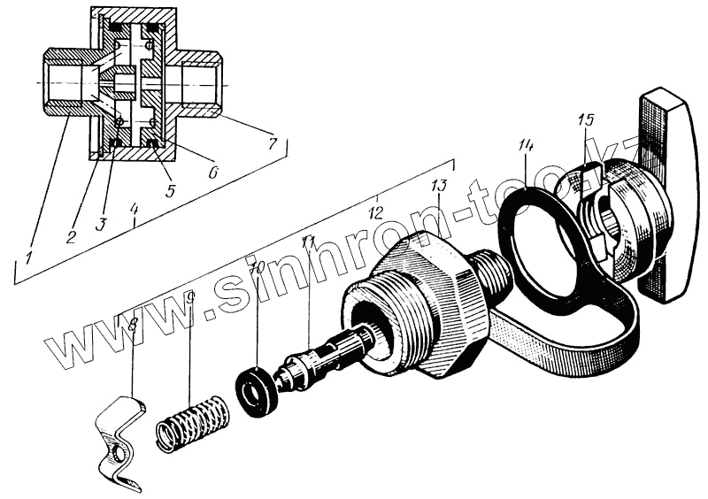 Каталог запасных частей к технике: КрАЗ-65055. Клапан контрольного вывода и клапан обрыва