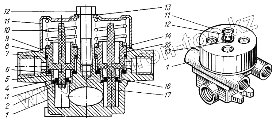 Каталог запасных частей к технике: КрАЗ-65055. Клапан защитный четырехконтурный
