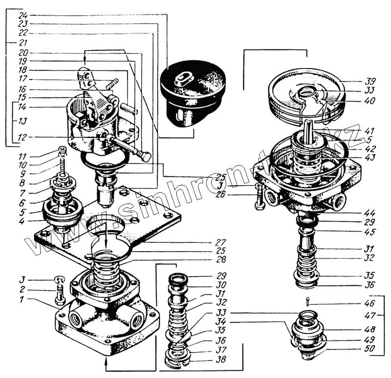 Каталог запасных частей к технике: КрАЗ-65055. Кран тормозной двухсекционный с рычагом