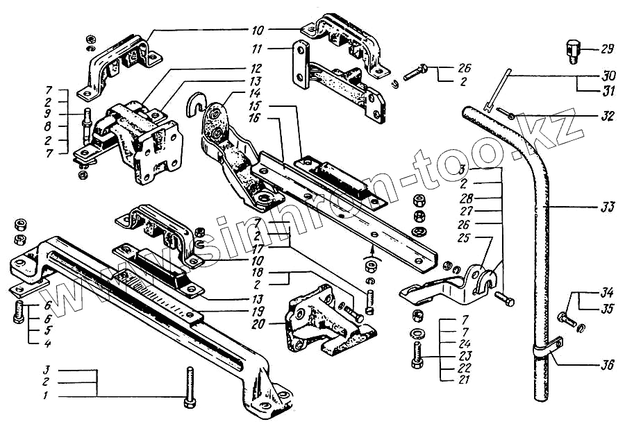 Каталог запасных частей к технике: КрАЗ-65055. Крепление силового агрегата
