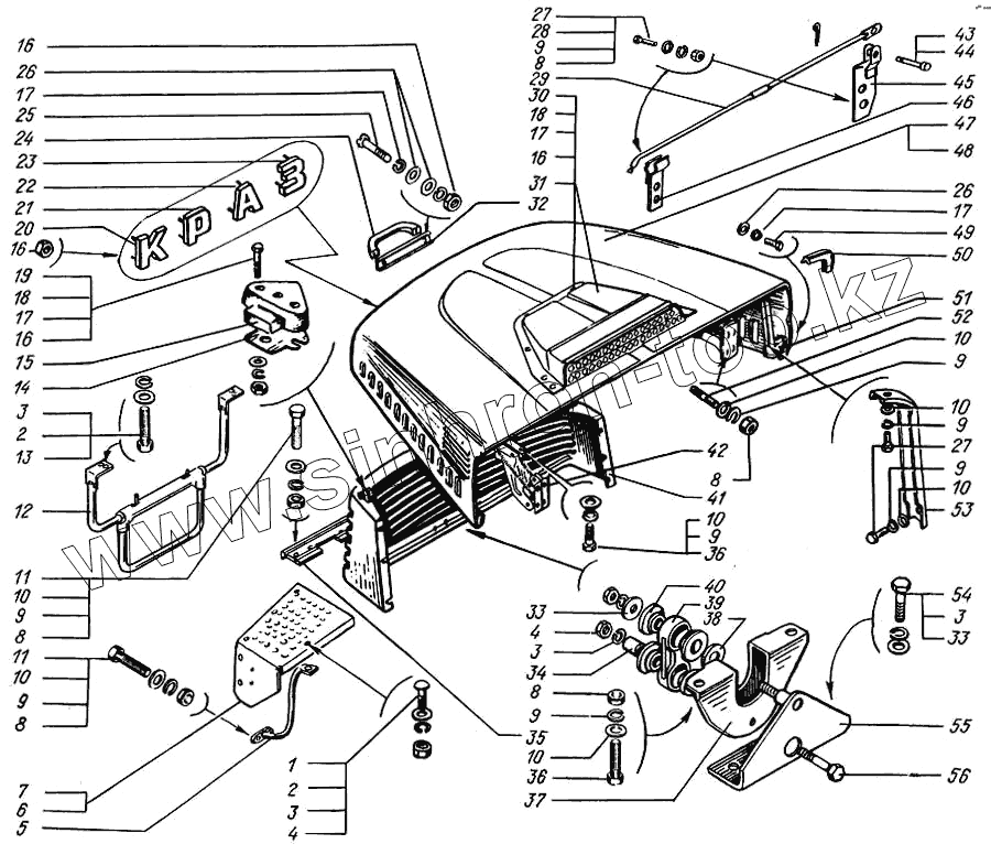 Каталог запасных частей к технике: КрАЗ-65055. Облицовка радиатора и капот