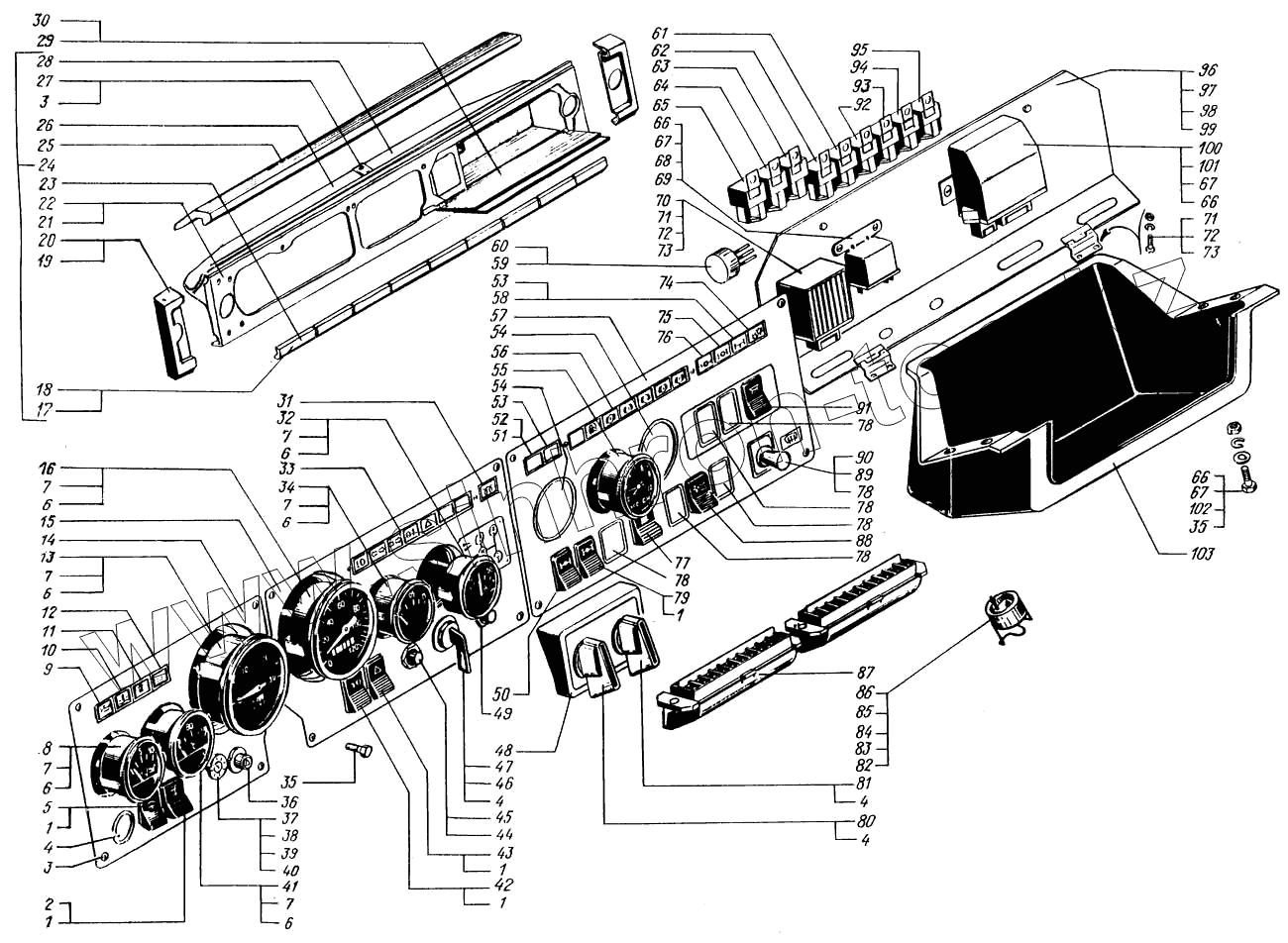 Каталог запасных частей к технике: КрАЗ-65055. Панель приборов