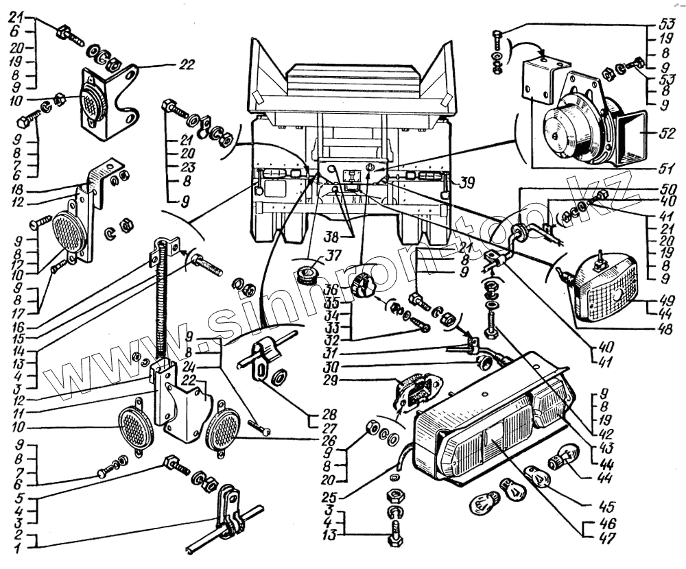 Каталог запасных частей к технике: КрАЗ-65055. Приборы световые задние