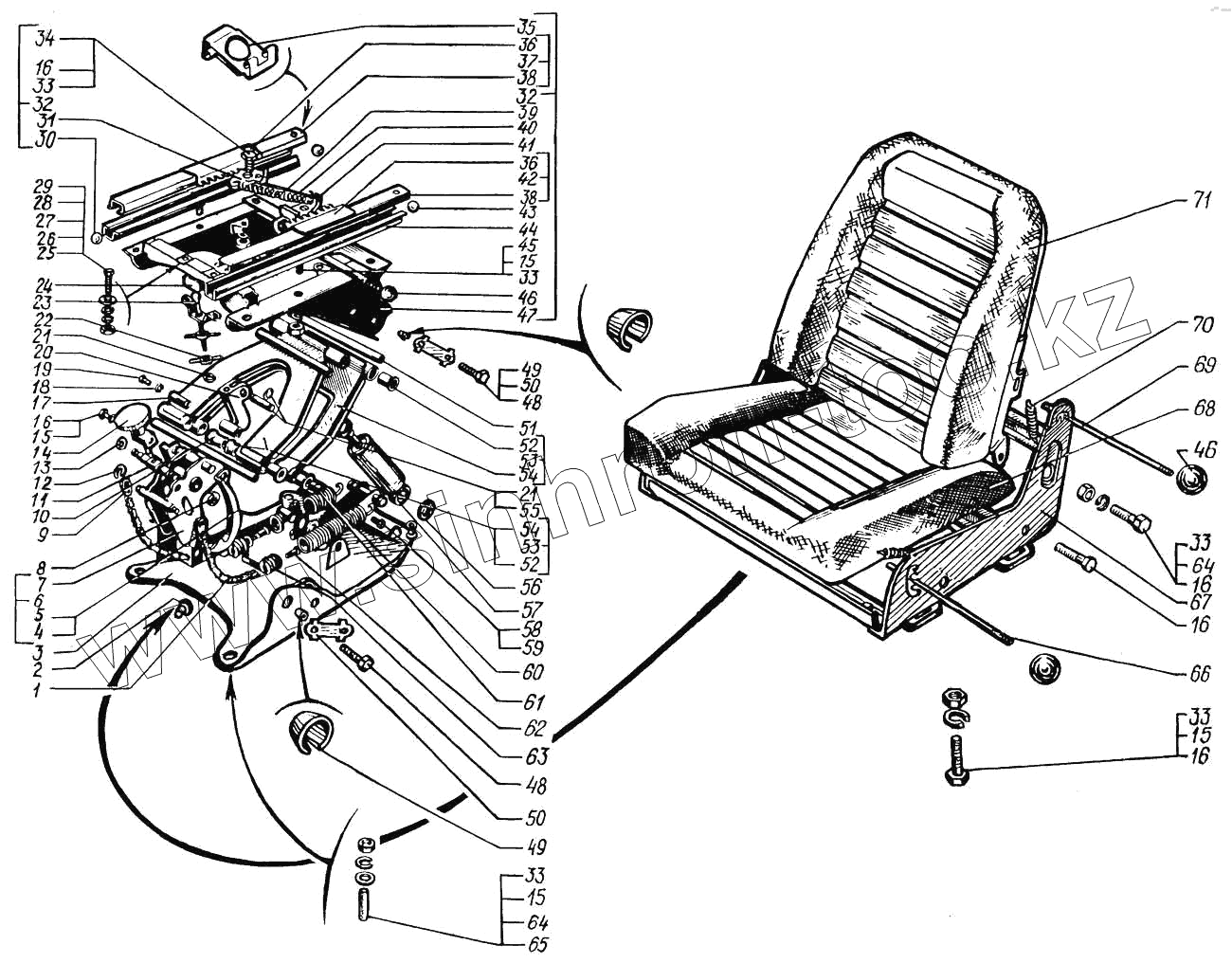 | 32 | 6443-6801012 | Остов сиденья с механизмом регулировки | |