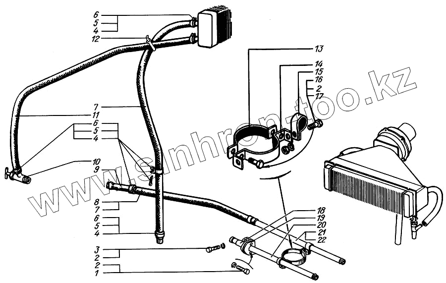 Каталог запасных частей к технике: КрАЗ-65055. Трубопроводы системы отопления кабины