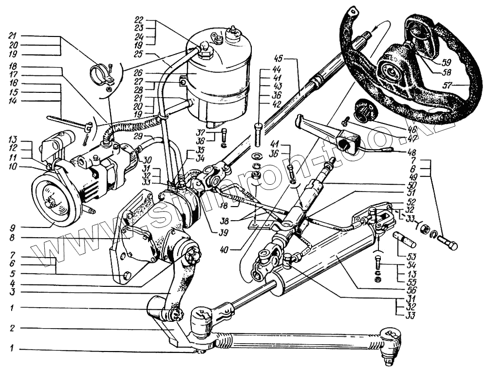 Каталог запасных частей к технике: КрАЗ-65055. Управление рулевое