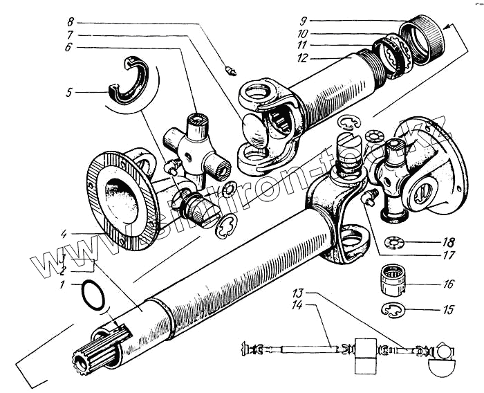 Каталог запасных частей к технике: КрАЗ-65055. Вал карданный заднего и среднего мостов
