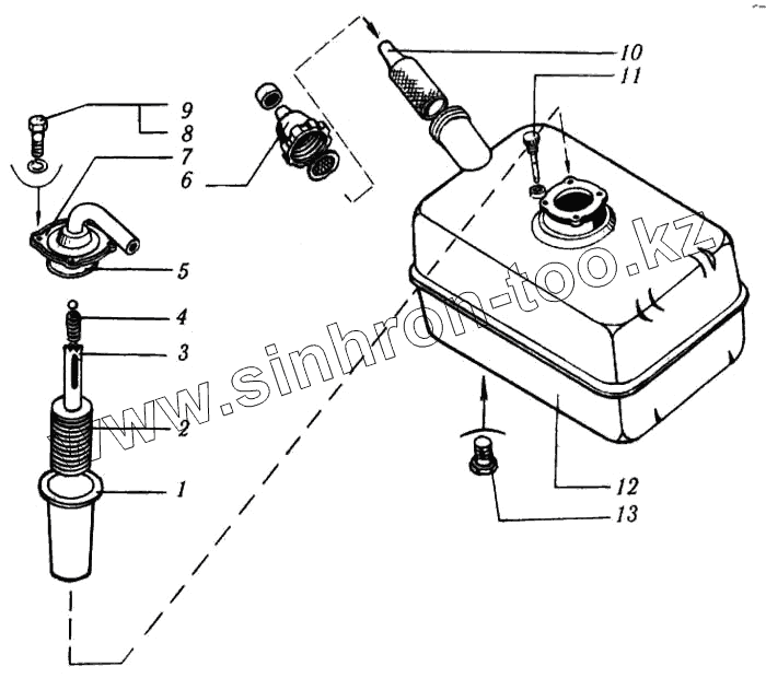 Каталог запасных частей к технике: КрАЗ-6510. Бак масляный одноцилиндрового опрокидывающего механизма