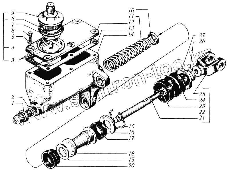 Каталог запасных частей к технике: КрАЗ-6510. Главный цилиндр выключения сцепления
