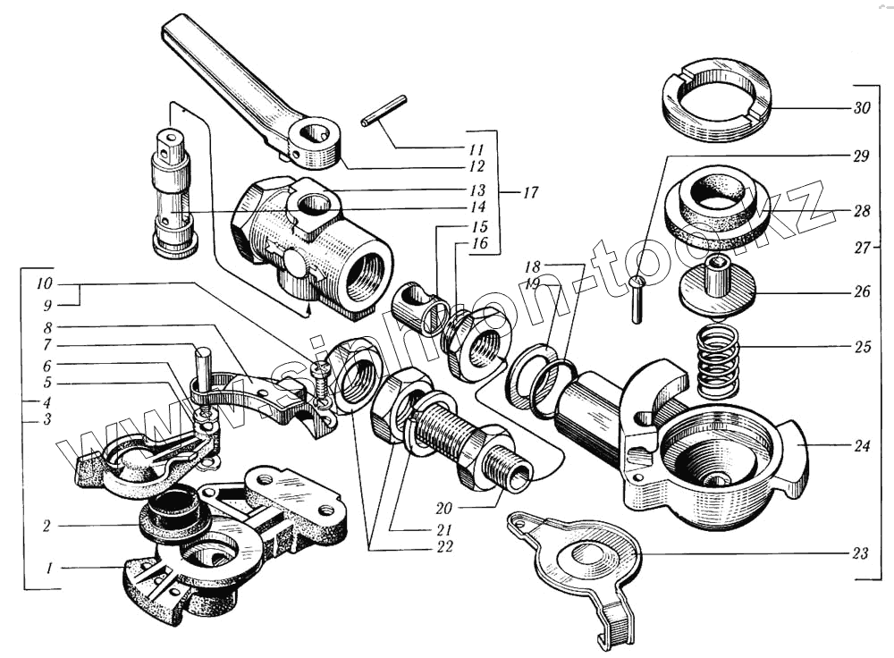 Каталог запасных частей к технике: КрАЗ-6510. Кран разобщительный и головки соединительные