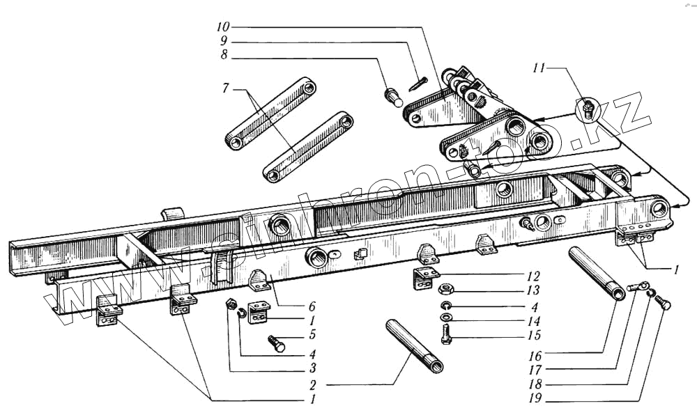 Каталог запасных частей к технике: КрАЗ-6510. Надрамник и балансир двухцилиндрового опрокидывающего механизма