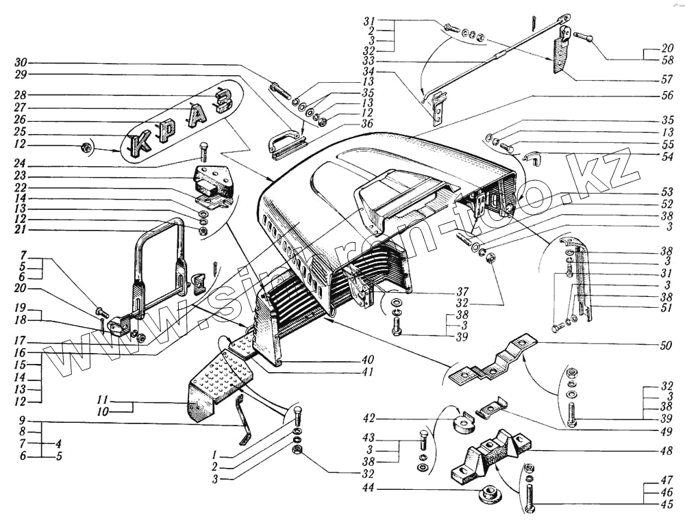 Каталог запасных частей к технике: КрАЗ-6510. Облицовка радиатора и капот