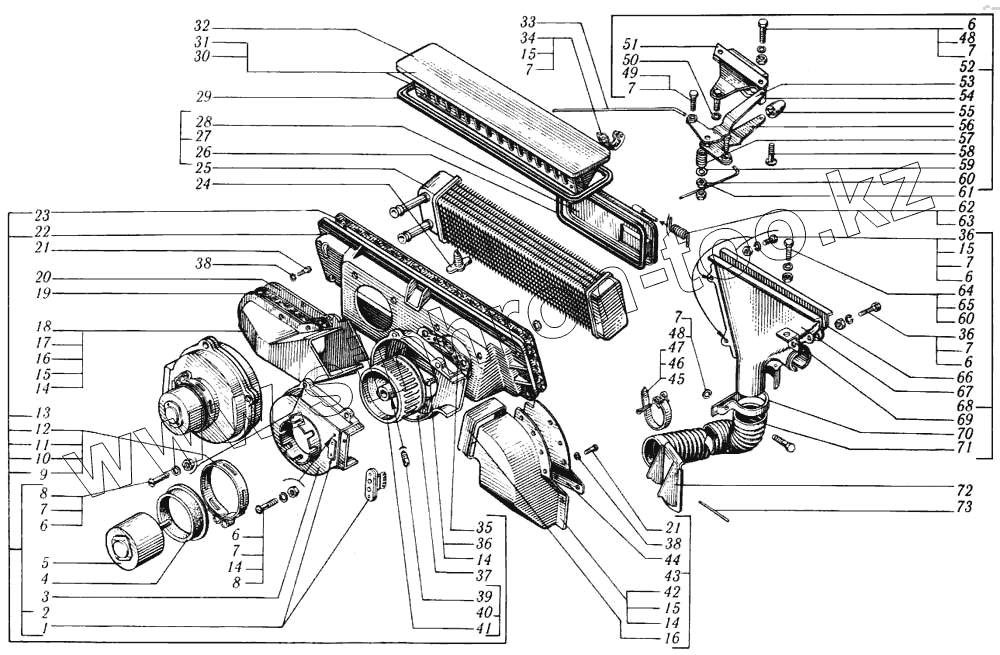 Каталог запасных частей к технике: КрАЗ-6510. Отопитель кабины и обогреватель ветровых стекол