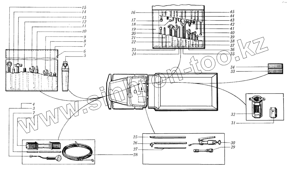 Каталог запасных частей к технике: КрАЗ-6510. Раскладка инструмента под сиденьем пассажира