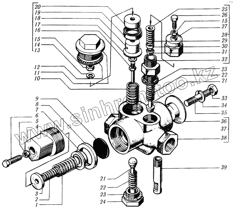 Каталог запасных частей к технике: КрАЗ-6510. Регулятор давления с предохранительным клапаном