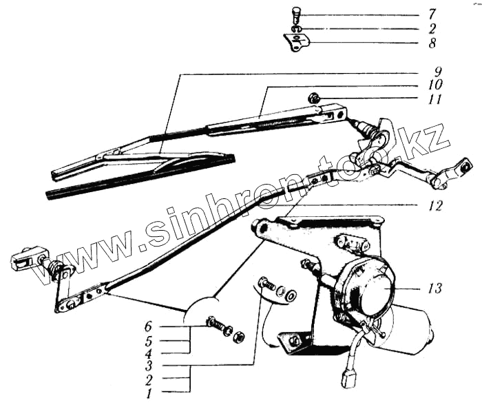 Каталог запасных частей к технике: КрАЗ-6510. Стеклоочиститель