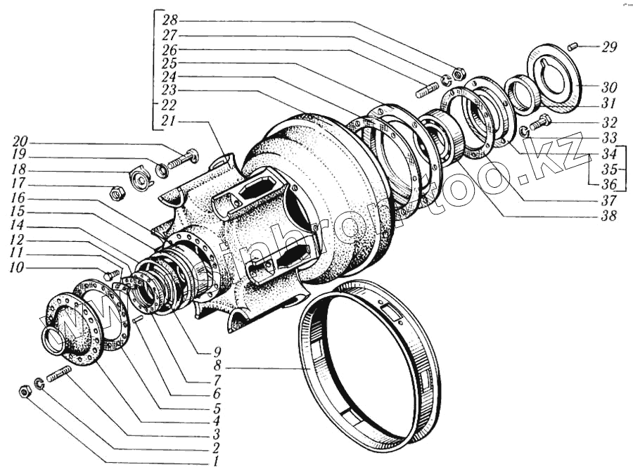 Каталог запасных частей к технике: КрАЗ-6510. Ступицы бездисковых колес заднего (среднего) моста