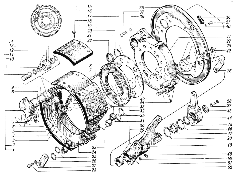 Каталог запасных частей к технике: КрАЗ-6510. Тормозной механизм переднего колеса