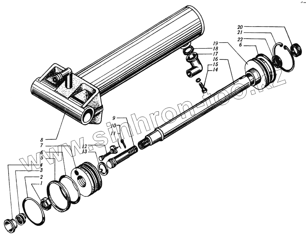 Каталог запасных частей к технике: КрАЗ-6510. Цилиндр опрокидывающего механизма