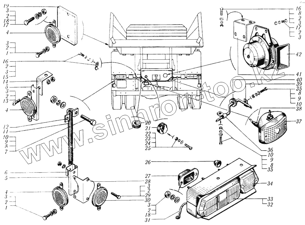 Каталог запасных частей к технике: КрАЗ-6510. Установка задних световых приборов