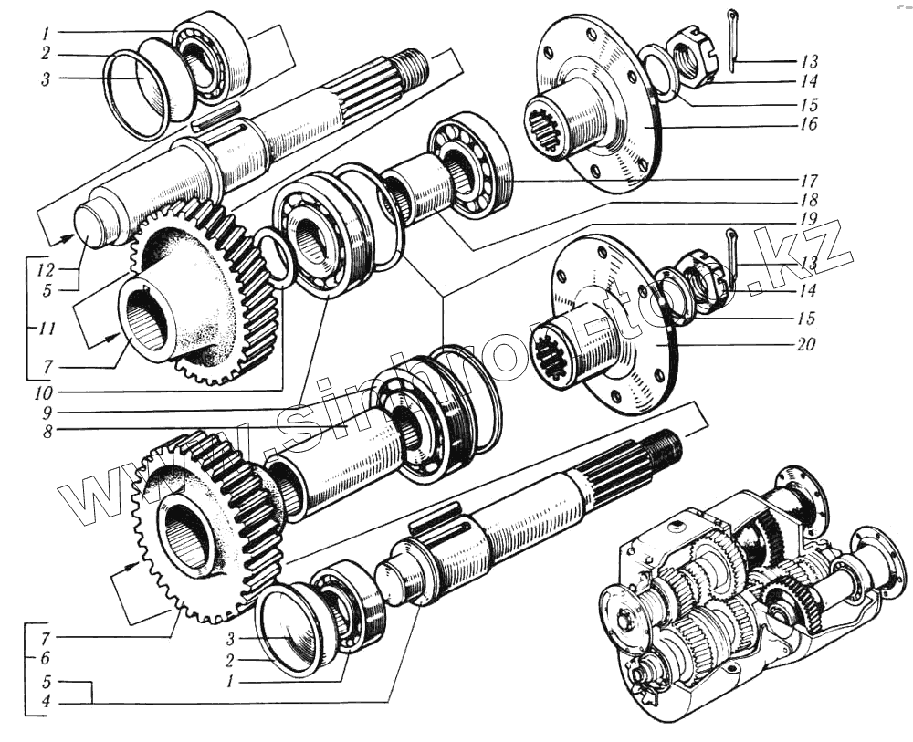 Каталог запасных частей к технике: КрАЗ-6510. Валы и шестерни привода мостов